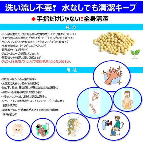 防災グッズ 10年保存 ボディ・クレンジングウォーター100ml(3日分) アミノエリア 洗い流し不要 頭皮・頭髪・全身清浄液 大豆アミノ酸主成分 防災用 ドライシャンプー 水のいらないシャンプー 災害対策 衛生用品