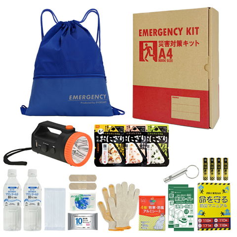 A4 防災セット 基本内容ボックス1プラス ブルー 非常用持ち出し袋 防災グッズ 1人用 非常食 おにぎり 保存水 簡易トイレ ラジオ ライト オフィス 職場 災害対策 A4K1P EVERSAFE