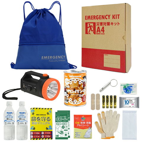 A4 防災セット 基本内容ボックス2プラス ブルー 非常用持ち出し袋 防災グッズ 1人用 非常食 カンパン 保存水 簡易トイレ ラジオ ライト オフィス 職場 災害対策 A4K2P EVERSAFE