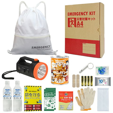 A4 防災セット 基本内容ボックス2プラス ホワイト 非常用持ち出し袋 防災グッズ 1人用 非常食 カンパン 保存水 簡易トイレ ラジオ ライト オフィス 職場 災害対策 A4K2P EVERSAFE