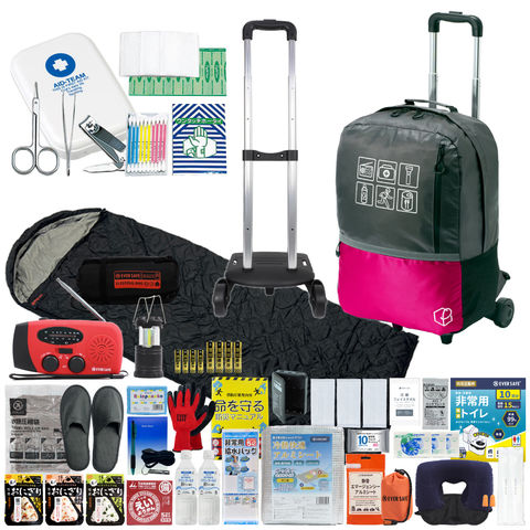 防災セット 1人用 キャリー・寝袋付 40L ビッグリュック レッド L4BRCRNB01 キャリーカート 寝袋 防災士監修 防災リュック 大容量 非常食 保存水 キャスター 2way 防災ラジオ 簡易トイレ 救急セット 懐中電灯 衛生用品 警戒レベル4 避難