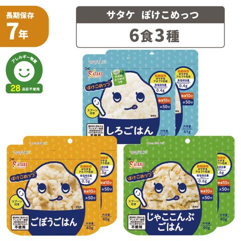 マジックライス ぽけこめっつ 7年保存 3種 6食 非常食セット 保存食セット アルファ米 しろごはん ごぼうごはん じゃここんぶごはん まとめ買い セット販売 アレルギー対応 ご飯 米 長期保存 アウトドア キャンプ 登山 備蓄食 非常用食品 災害備蓄 サタケ (メール便1セットまで)