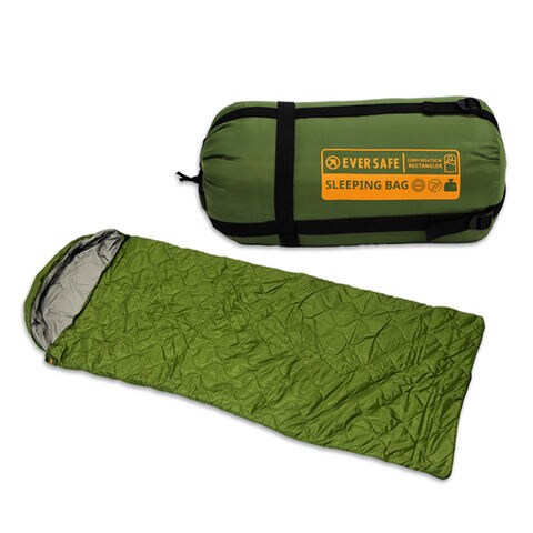 防災用品 SLEEPING BAG 1人用 封筒型 寝袋 EVERSAFE シュラフ 800g 軽量 コンパクト シングル カーキ レクタングラー 避難時 災害対策 オールシーズン 車中泊 防寒 登山 キャンプ