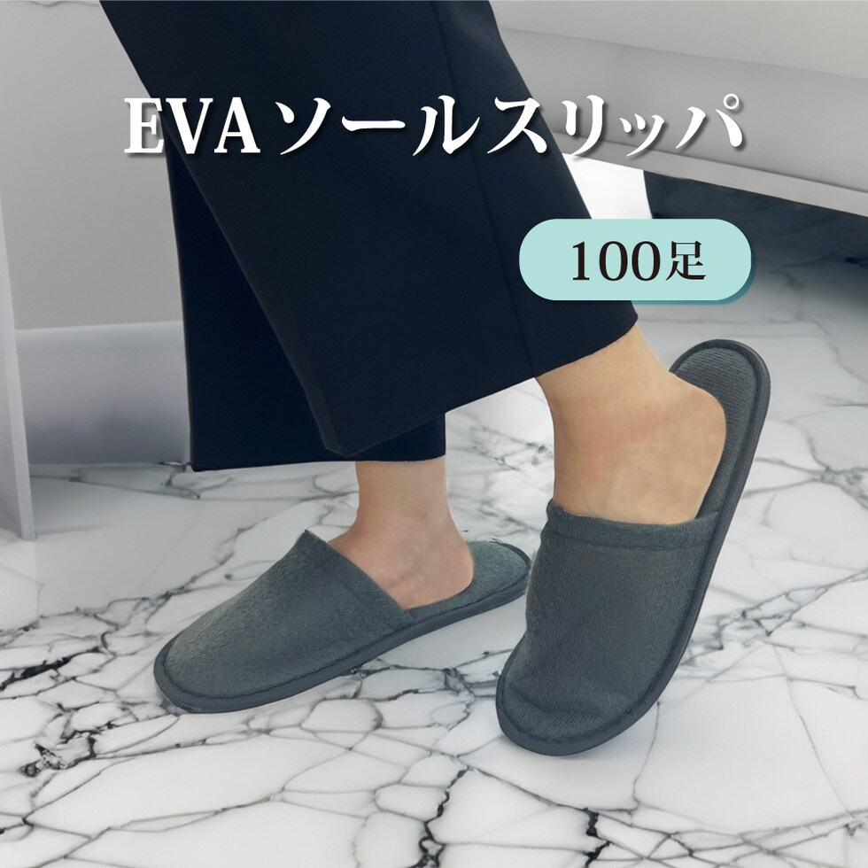 EVAソールスリッパ (グレー) 100足 簡易スリッパ 携帯用シューズ 室内履き ルームシューズ 防災グッズ 非常用 軽量 旅行 飛行機 機内用 学校行事