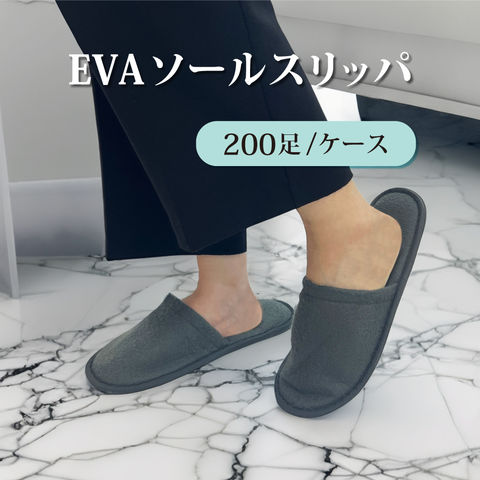EVAソールスリッパ (グレー) 200足/ケース 簡易スリッパ 携帯用シューズ 室内履き ルームシューズ 防災グッズ 非常用 軽量 旅行 飛行機 機内用 学校行事