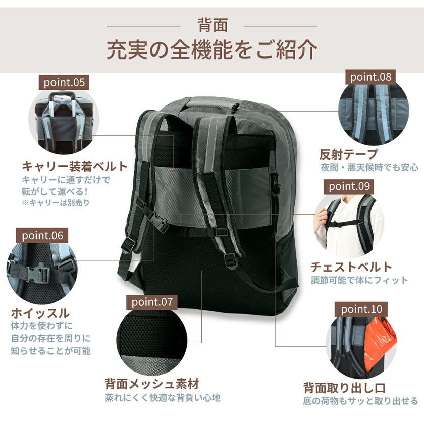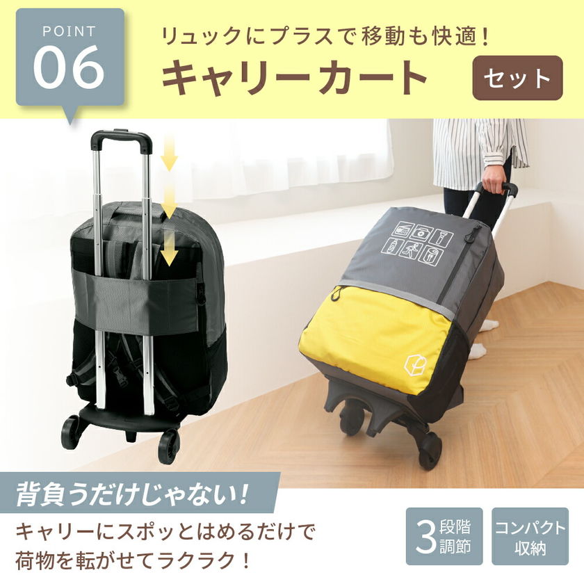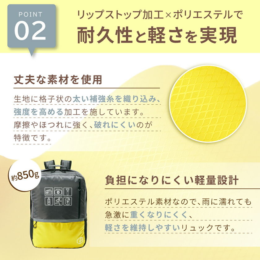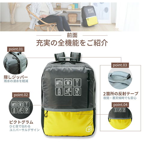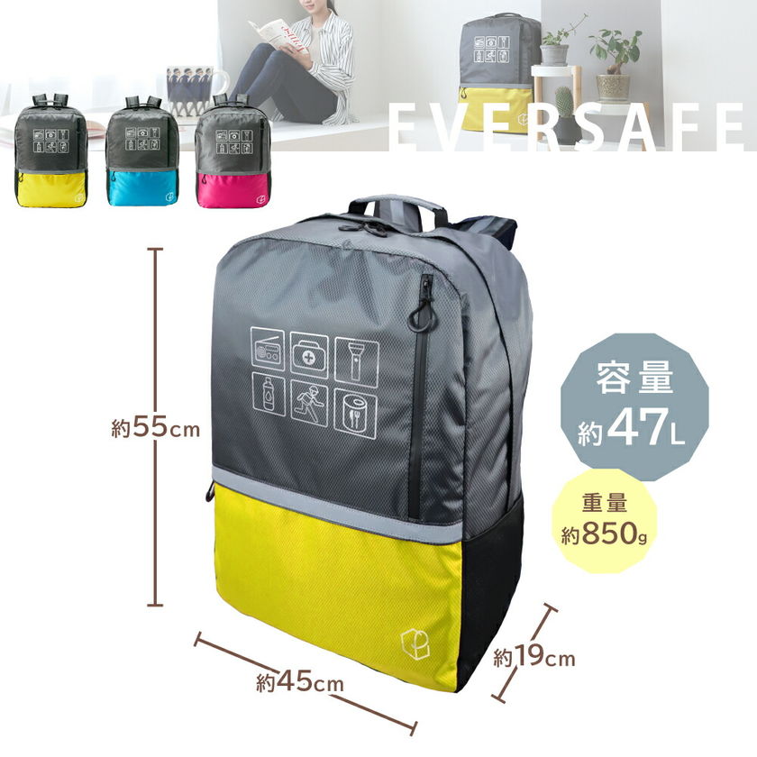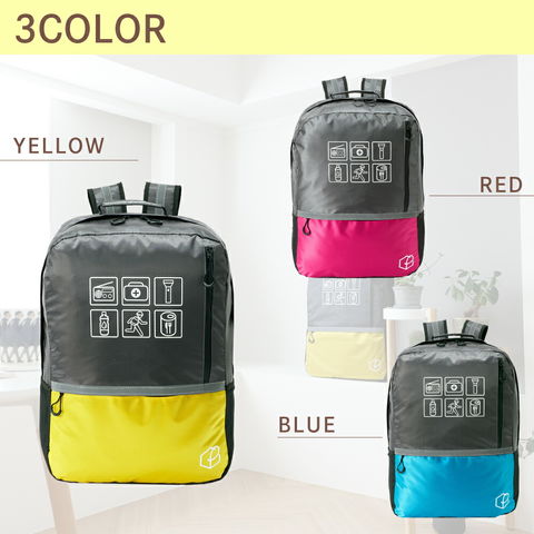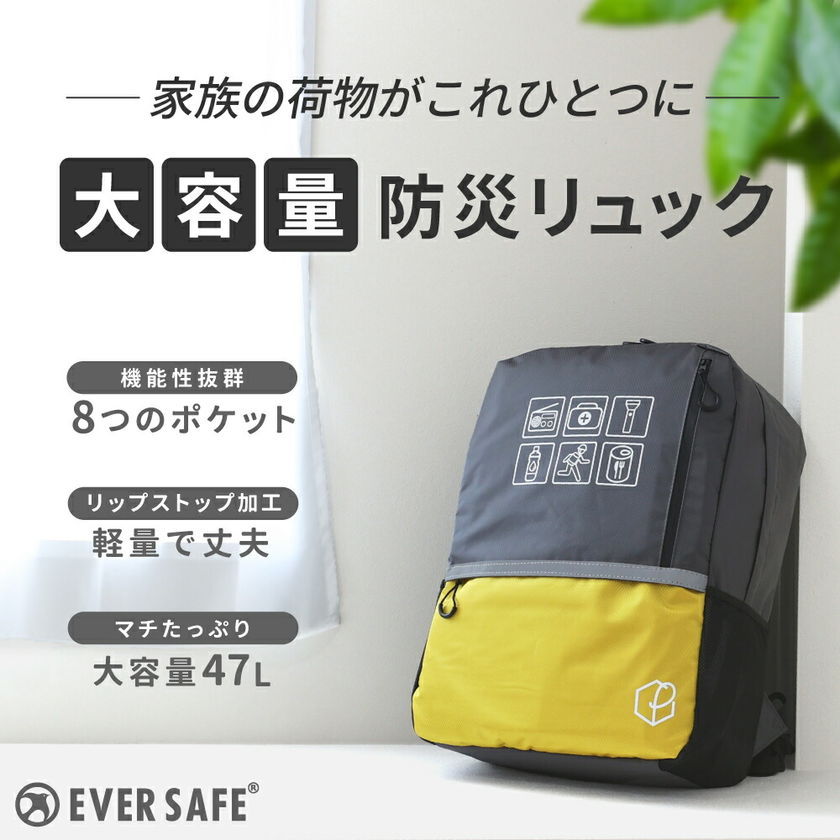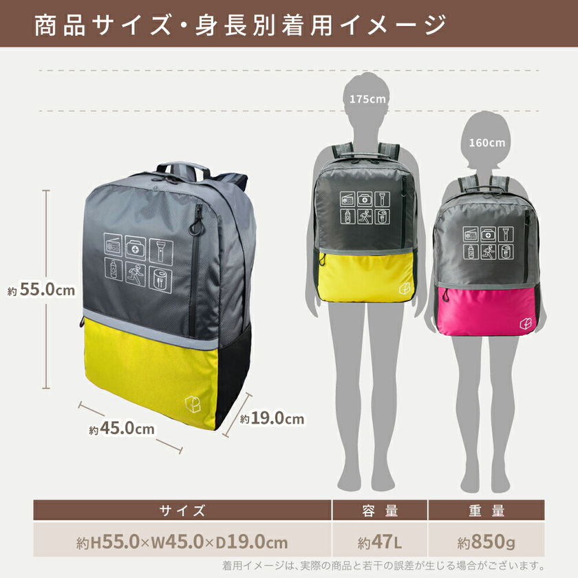 防災リュック 大容量 イエロー 47L ビッグリュック キャリー・ゴムバンド付 3カラーキャリー対応 軽量 特大 リュックのみ 防災グッズ 視認性 災害時 非常用持ち出し袋 中身なし キャリー付 ゴムバンド付 防災バッグ 避難 PEACEUP
