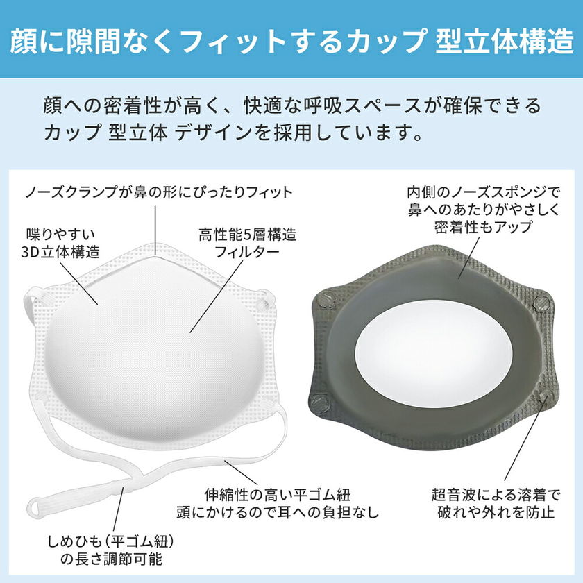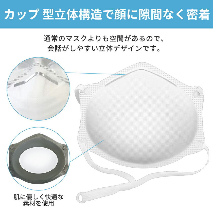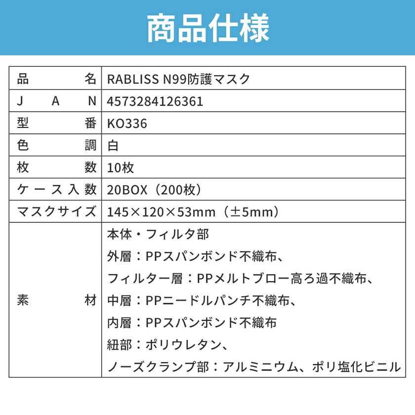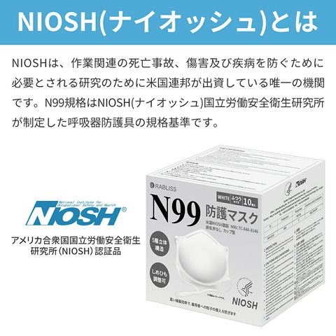 米国NIOSH認証 N99 マスク ホワイト 200枚(10枚入×20箱/ケース) 小林薬品 正規品 高機能 5層フィルター KO336 しめひも調整可 医療用 防護マスク 男女兼用 フリーサイズ 白 不織布マスク 使い捨て 防塵 粉塵 カップ型
