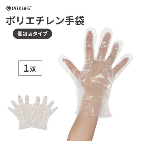 ポリエチレン手袋 衛生用品 使い捨て手袋 個包装 左右兼用 エンボス加工 掃除 介護 毛染め EVERSAFE (メール便99双までOK)