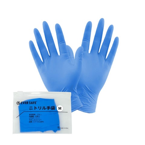 ニトリル手袋 1双 Mサイズ ニトリル手袋 使い捨て手袋 ラテックスフリー パウダーフリー スベリ止め付き 伸縮性 左右兼用 防災備蓄品 介護 清掃 作業用 感染症対策 EVERSAFE