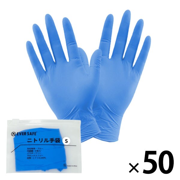 ニトリル手袋 50双 Sサイズ ニトリル手袋 使い捨て手袋 ラテックスフリー パウダーフリー スベリ止め付き 伸縮性 左右兼用 防災備蓄品 介護 清掃 作業用 感染症対策 EVERSAFE