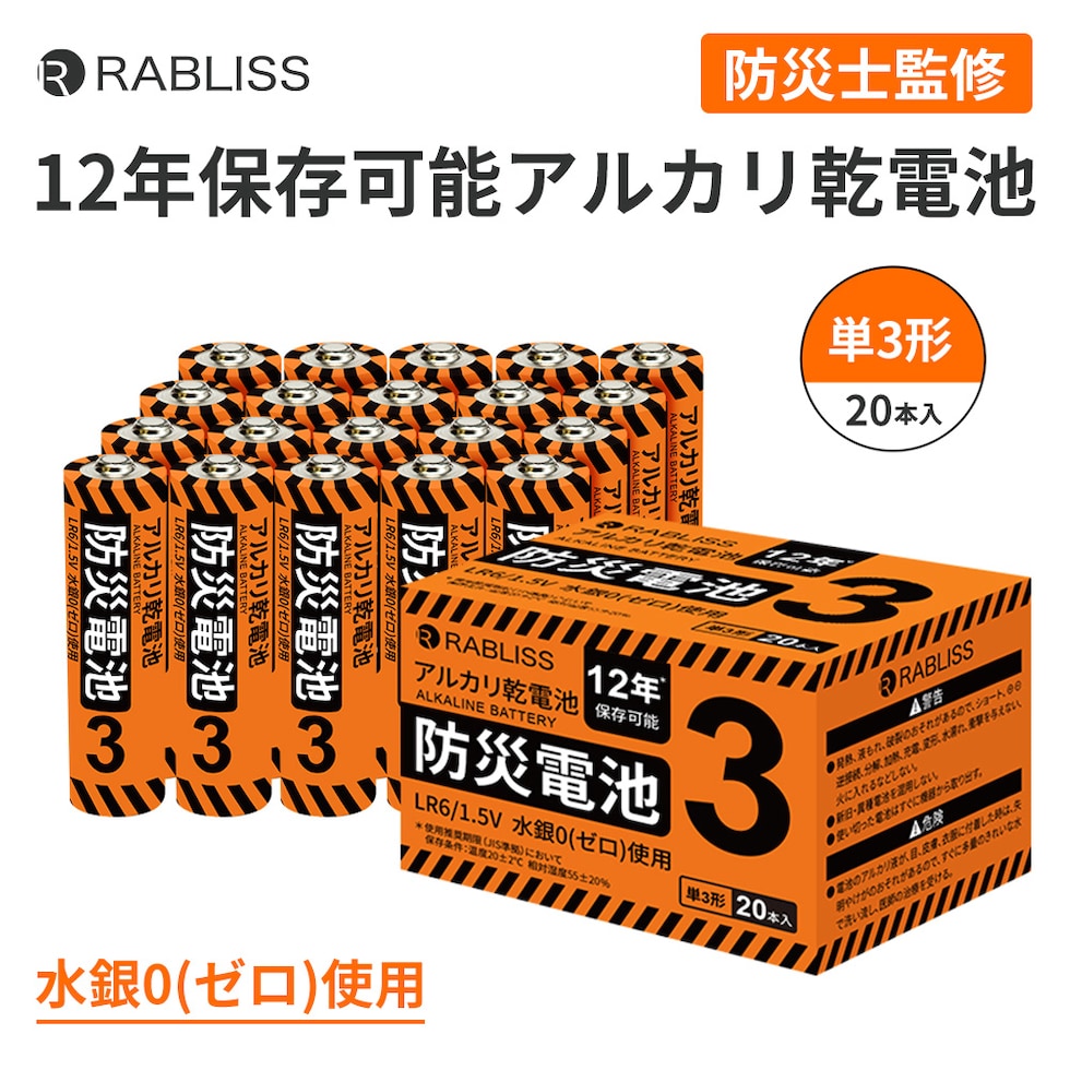 防災電池 単3形 20本入 1個 アルカリ乾電池 12年保存 乾電池 単3電池 防災士監修 長期保存 防災グッズ 備蓄 災害 停電 地震 充電 日常備蓄 液もれ防止 水銀ゼロ仕様 KO389