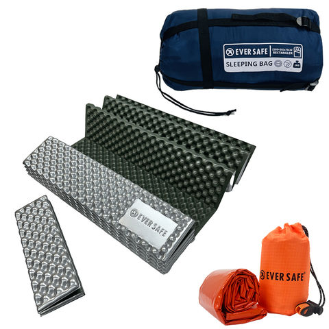 寝袋(ネイビー) 静音アルミ寝袋(巾着型) キャンプマット シングル(カーキ) 3点セット 防災セット 防災グッズ 非常用 アウトドア キャンプ 車中泊 寝袋 防災 シュラフ アルミシート アルミマット オールシーズン 断熱 防音 EVERSAFE