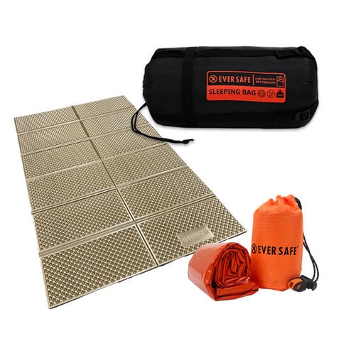寝袋(ブラック) 静音アルミ寝袋(巾着型) キャンプマット ダブル 3点セット 防災セット 防災グッズ 非常用 アウトドア キャンプ 車中泊 寝袋 防災 シュラフ アルミシート アルミマット オールシーズン 断熱 防音 EVERSAFE