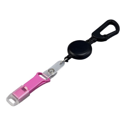 カラビナリール 黒 ベルト付(リール紐70cm伸縮)エマージェンシーホイッスル プラスチックホイッスル ローズピンク EX200 KB50-RE EW-1