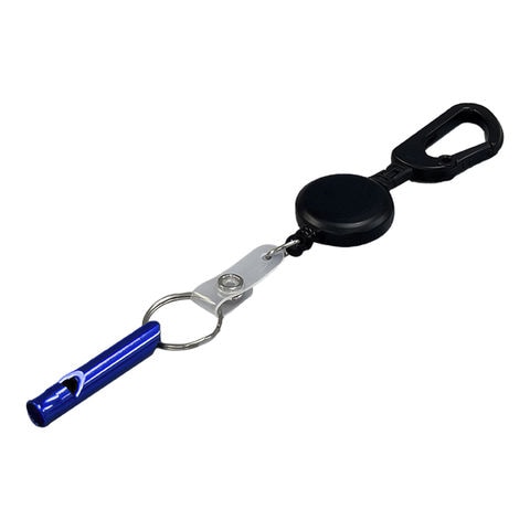 カラビナリール 黒 ベルト付(リール紐70cm伸縮)アルミホイッスル ブルー EX200 KB50-RE ESW01