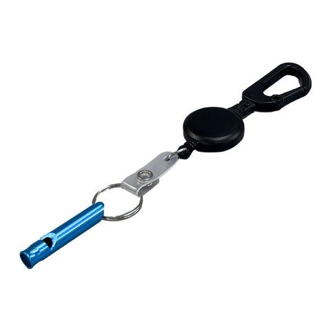 カラビナリール 黒 ベルト付(リール紐70cm伸縮)アルミホイッスル ライトブルー EX200 KB50-RE ESW01