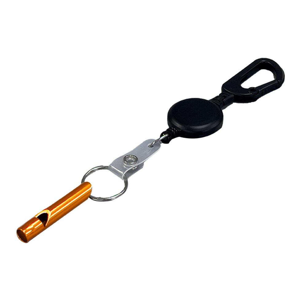 カラビナリール 黒 ベルト付(リール紐70cm伸縮)アルミホイッスル オレンジ EX200 KB50-RE ESW01