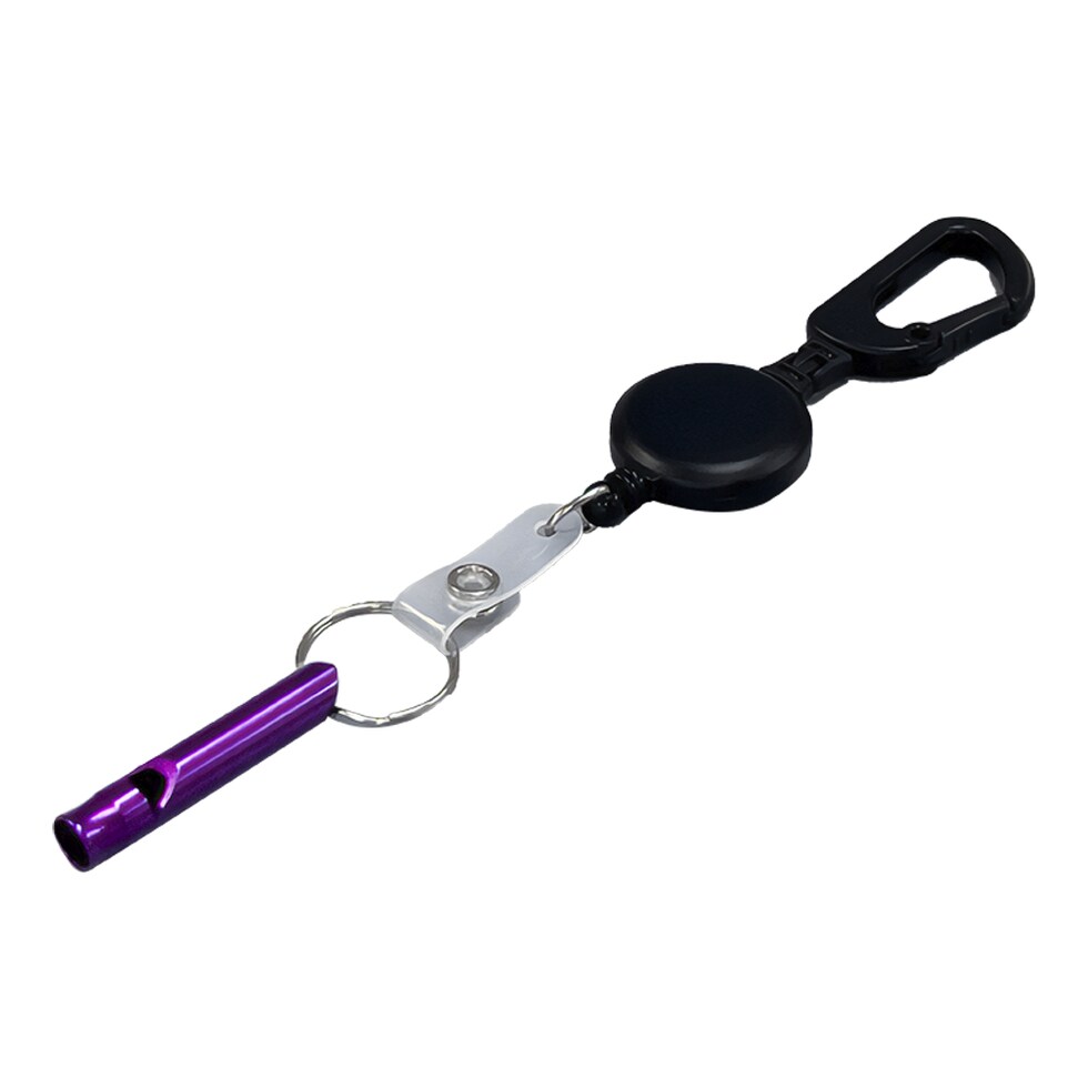 カラビナリール 黒 ベルト付(リール紐70cm伸縮)アルミホイッスル パープル EX200 KB50-RE ESW01