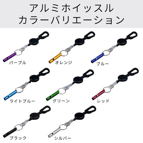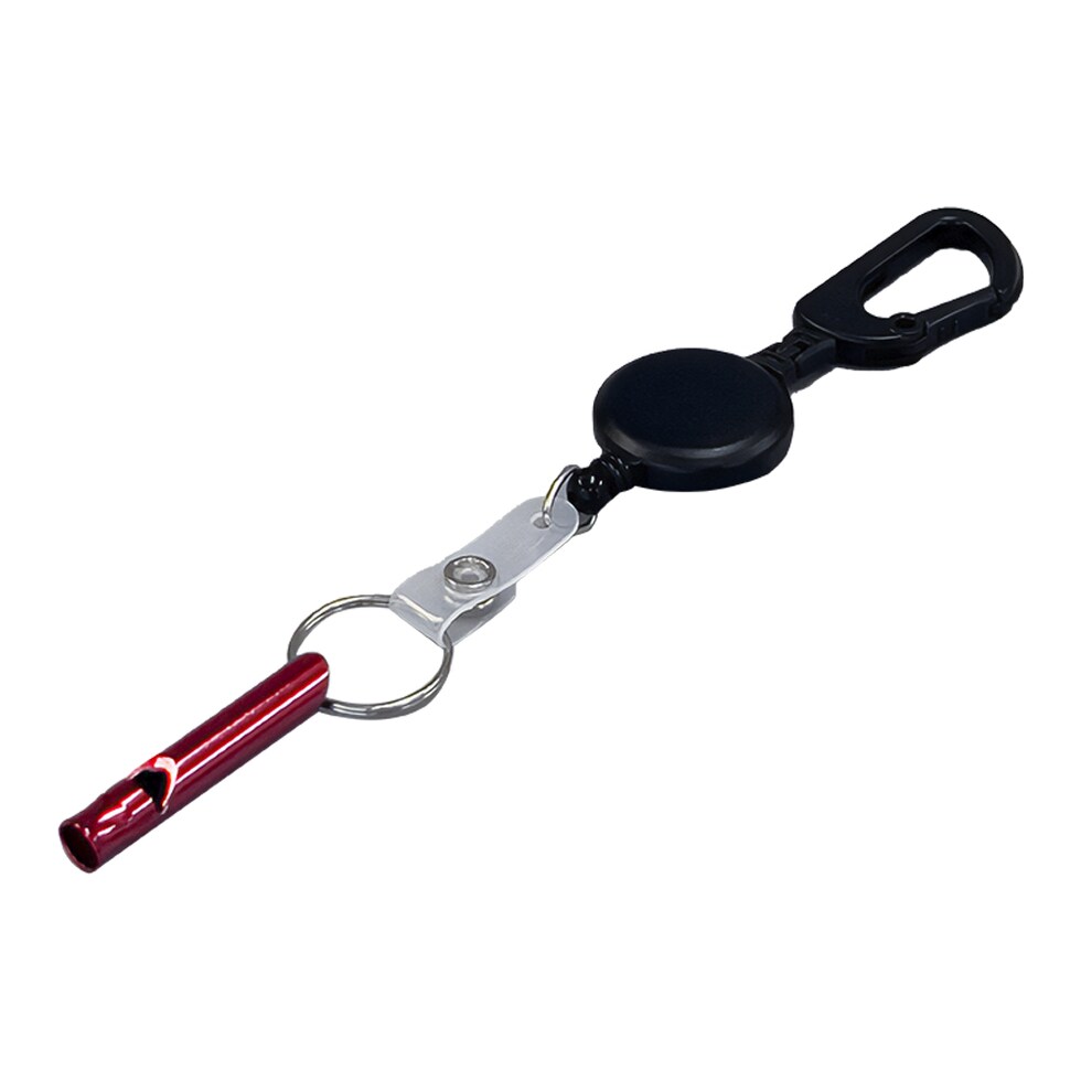 カラビナリール 黒 ベルト付(リール紐70cm伸縮)アルミホイッスル レッド EX200 KB50-RE ESW01