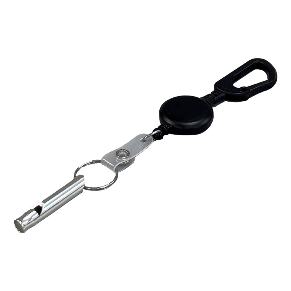 カラビナリール 黒 ベルト付(リール紐70cm伸縮)アルミホイッスル シルバー EX200 KB50-RE ESW01