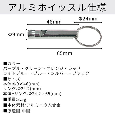 アルミホイッスル オレンジ カラビナリール付き小 防災 防犯 緊急 女性 子ども 避難 EX250 PEACEUP (メール便30個まで)