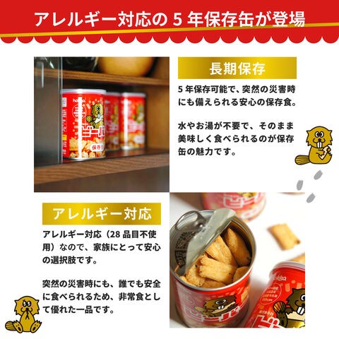 ビーバー保存缶 非常食 5年保存 アレルギー対応 28品目不使用 お菓子 おかし あられ 防災グッズ 防災食 備蓄 缶入り 保存食 災害 避難 地震 昆布 あげあられ hokka 北陸製菓