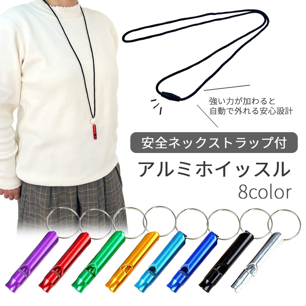 アルミホイッスル+ネックストラップ レッド 1個 防災グッズ ホイッスル 安全ストラップ付 笛 防犯 災害 地震対策 救援 SOS 大音量 アウトドア 通学 女性 子供 備蓄品 PEACEUP