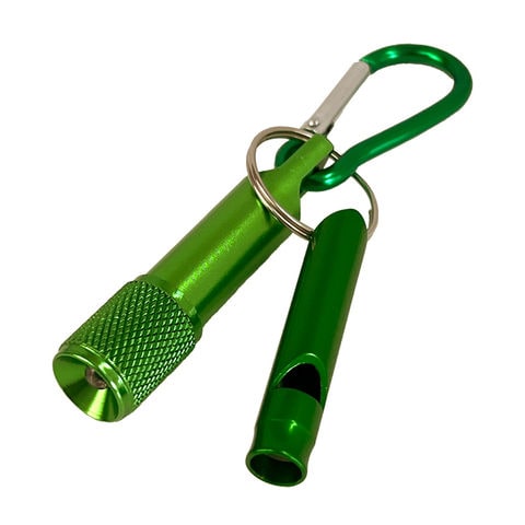 カラビナ付 ミニアルミLEDライト&ホイッスル グリーン 50個 ミニライト 笛 LED 緊急避難 救助信号 災害 防災グッズ 小型軽量 防災セット アウトドア 防災用品 高齢者 防犯 夜間 ホイッスル EVERSAFE
