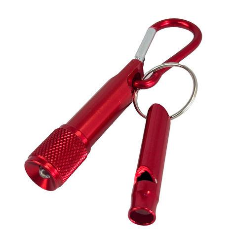 カラビナ付 ミニアルミLEDライト&ホイッスル レッド 100個 ミニライト 笛 LED 緊急避難 救助信号 災害 防災グッズ 小型軽量 防災セット アウトドア 防災用品 高齢者 防犯 夜間 ホイッスル EVERSAFE