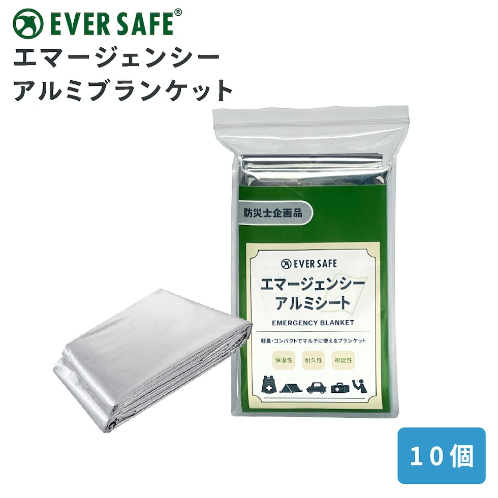 エマージェンシーアルミブランケット 10個 防災グッズ 保温性 耐久性 認識性 アルミブランケット 防災士 寝袋 防災 避難 断熱 軽量 シート エマージェンシー アウトドア キャンプ 災害対策 防水 緊急 EVERSAFE