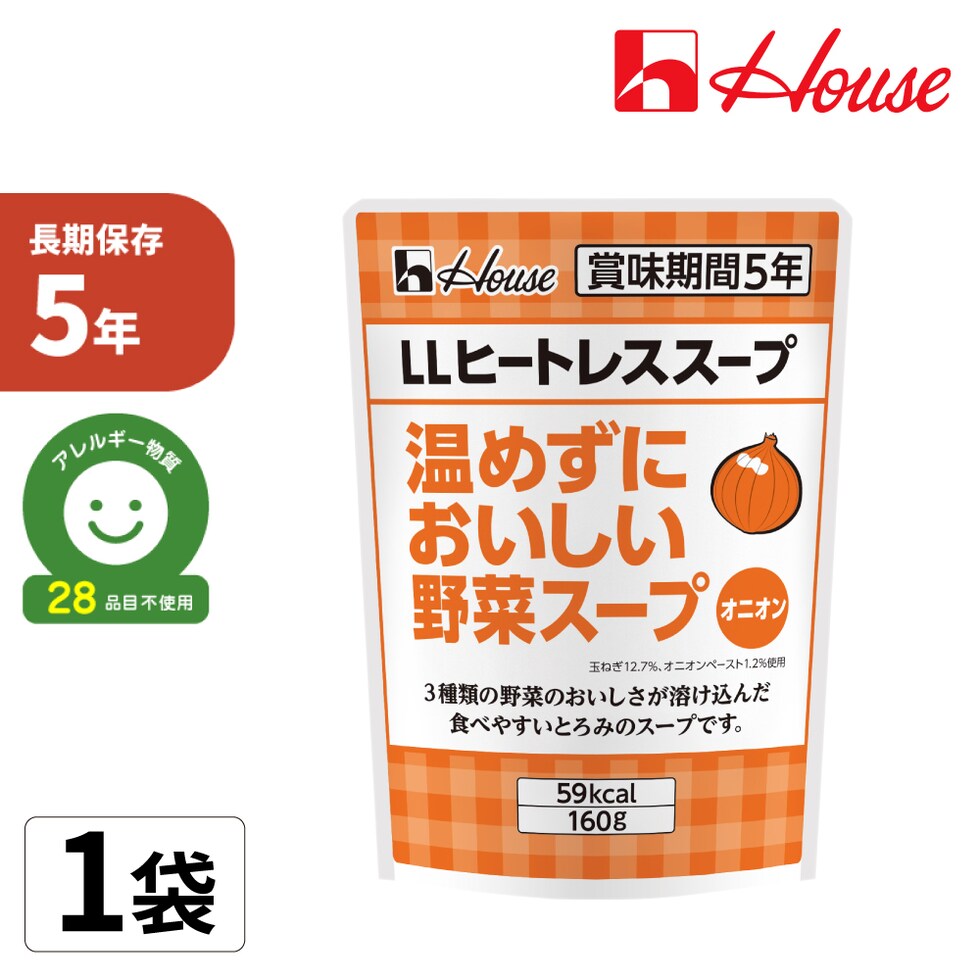 LLヒートレススープ 温めずにおいしい野菜スープ オニオン 160g 1袋 レトルトスープ オニオンスープ 非常食 5年保存 防災食 備蓄品 防災用品 非常用 常温保存 まとめ買い ハウス食品 (メール便6個まで)