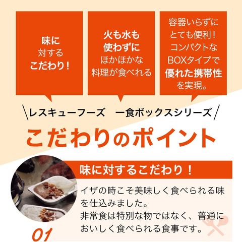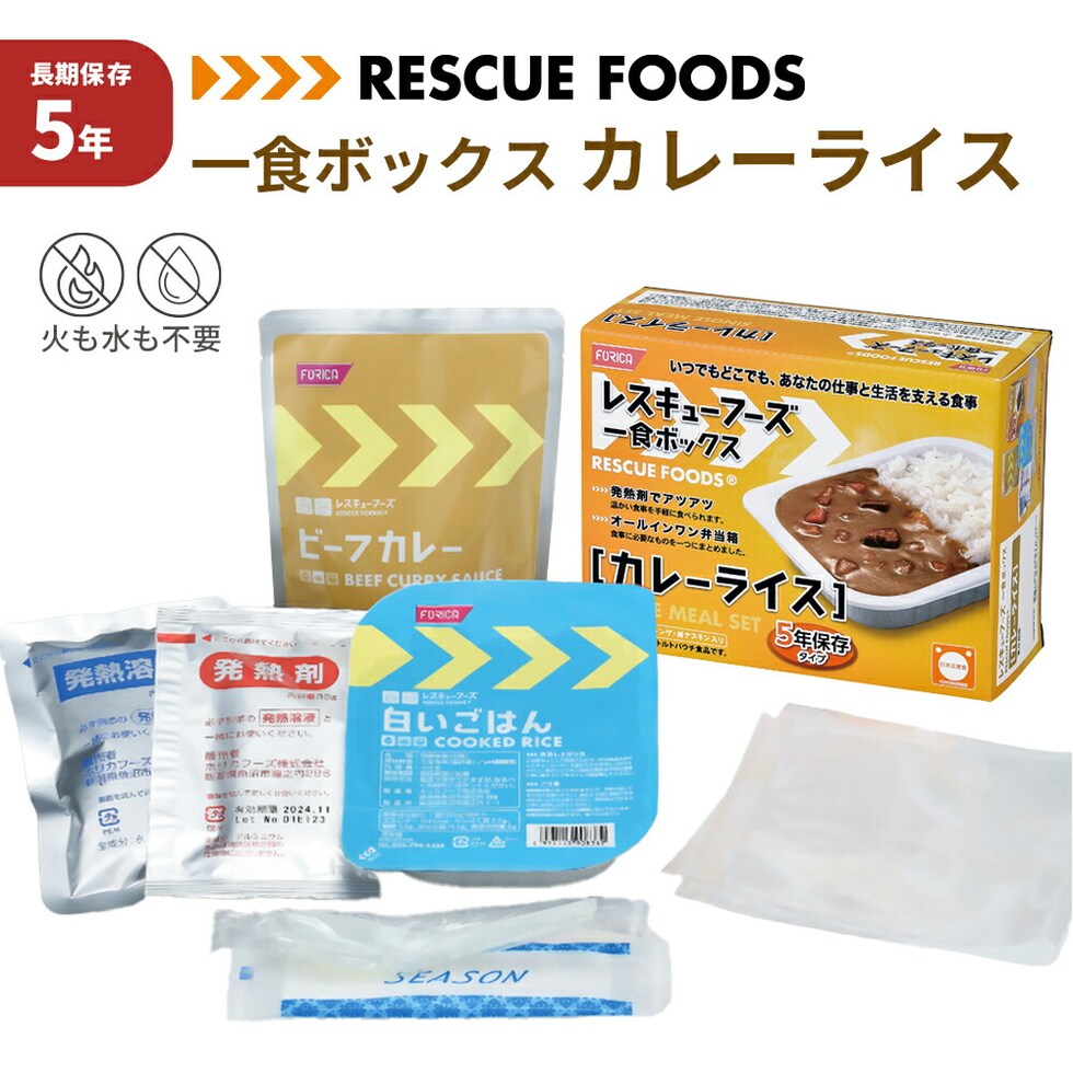 一食ボックス カレーライス 非常食 レスキューフーズ 5年保存 防災食 温かい 保存食 防災グッズ 日本災害食 簡単調理 発熱剤 加熱袋 備蓄品 非常用 アウトドア レトルト 缶詰 ホリカフーズ