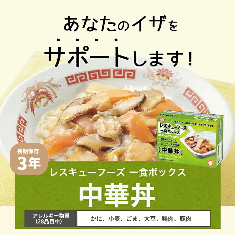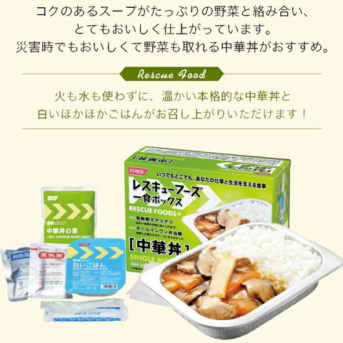 一食ボックス 中華丼 非常食 レスキューフーズ 3年保存 防災食 温かい 保存食 防災グッズ 日本災害食 簡単調理 発熱剤 加熱袋 備蓄品 非常用 アウトドア レトルト 缶詰 ホリカフーズ