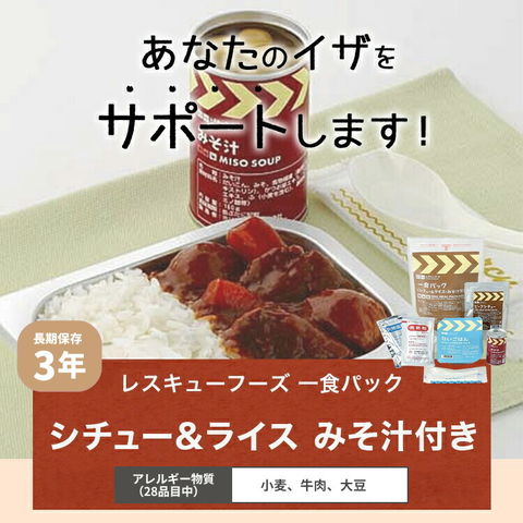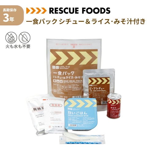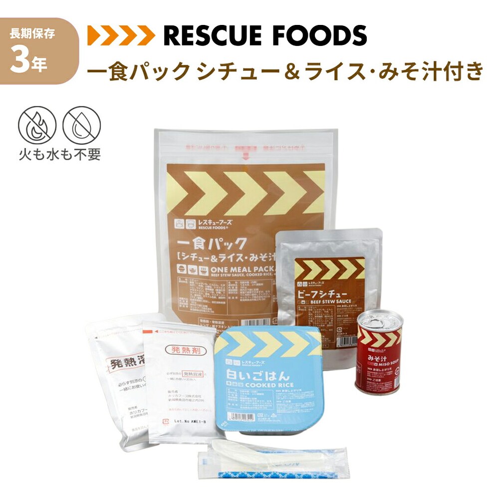 一食パック シチュー&ライス みそ汁付き 非常食 レスキューフーズ 3年保存 防災食 温かい 保存食 防災グッズ 日本災害食 簡単調理 発熱剤 加熱袋 備蓄品 非常用 アウトドア レトルト 缶詰 ホリカフーズ