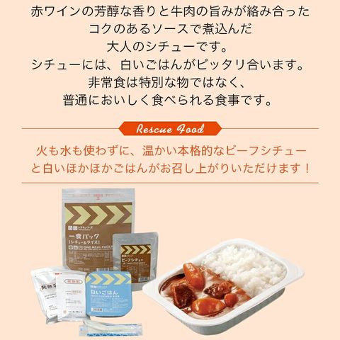 一食パック シチュー&ライス みそ汁付き 非常食 レスキューフーズ 3年保存 防災食 温かい 保存食 防災グッズ 日本災害食 簡単調理 発熱剤 加熱袋 備蓄品 非常用 アウトドア レトルト 缶詰 ホリカフーズのレビュー