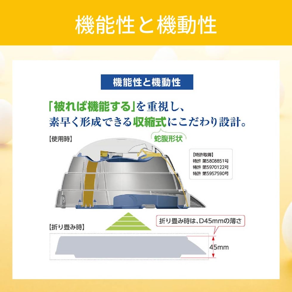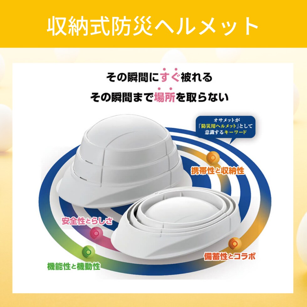 オサメットエッグ 防災ヘルメット オサメット A4サイズ 防災用ヘルメット 国家検定品合格品 日本製 飛来・落下物 KAGAヘルメット 折りたたみヘルメット 折り畳み ヘルメット あご紐 つば付き 防災グッズ 頭囲55~64cm 男女兼用 大人 防災 KGO-TMG-01 加賀産業
