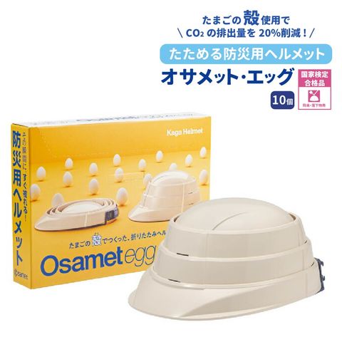 オサメットエッグ 10個 防災ヘルメット オサメット A4サイズ 防災用ヘルメット 国家検定品合格品 日本製 飛来・落下物 KAGAヘルメット 折りたたみヘルメット 折り畳み ヘルメット あご紐 つば付き 防災グッズ 頭囲55~64cm 男女兼用 大人 防災 KGO-TMG-01 加賀産業