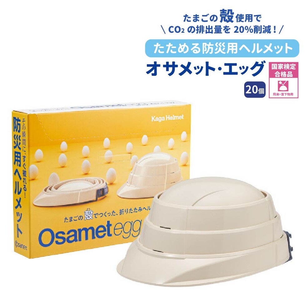 オサメットエッグ 20個 防災ヘルメット オサメット A4サイズ 防災用ヘルメット 国家検定品合格品 日本製 飛来・落下物 KAGAヘルメット 折りたたみヘルメット 折り畳み ヘルメット あご紐 つば付き 防災グッズ 頭囲55~64cm 男女兼用 大人 防災 KGO-TMG-01 加賀産業