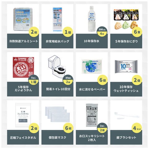 | 簡易トイレ10回分 | 2 | 凝固剤/排便処理袋付 水不要 可燃ごみとして処分可能 保存期間15年以上 |