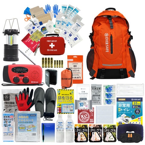 防災セット 1人用 EVERSAFEリュック (オレンジ) L5ES01 防災グッズ 防災士監修 ファーストエイドキット 避難グッズ 災害対策 地震対策 トイレ 非常食 ランタン ラジオ 長期保存水 懐中電灯 警戒レベル5