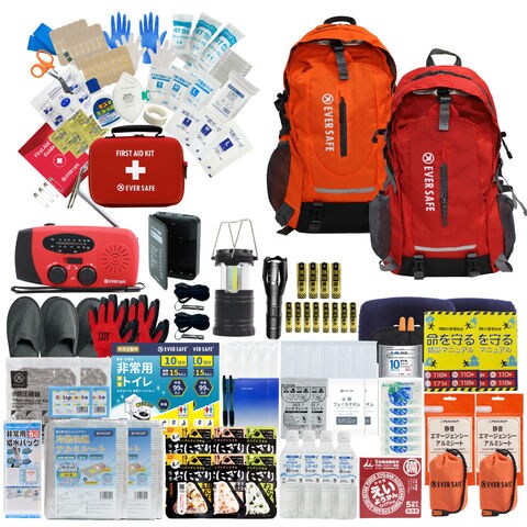 防災セット 2人用 EVERSAFEリュック (オレンジ×レッド) L5ES02 防災グッズ 防災士監修 ファーストエイドキット 避難グッズ 災害対策 地震対策 トイレ 非常食 ランタン ラジオ 長期保存水 懐中電灯 警戒レベル5