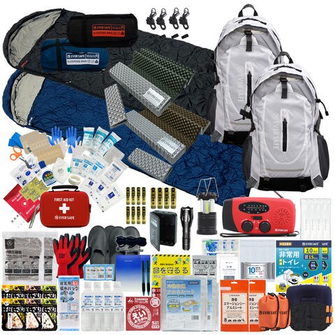 防災セット 2人用 寝袋付き・マット付き EVERSAFEリュック (ホワイト×ホワイト) L5ESNBMT02 防災グッズ 防災士監修 ファーストエイドキット 避難グッズ 災害対策 地震対策 トイレ 非常食 ランタン ラジオ 長期保存水 警戒レベル5