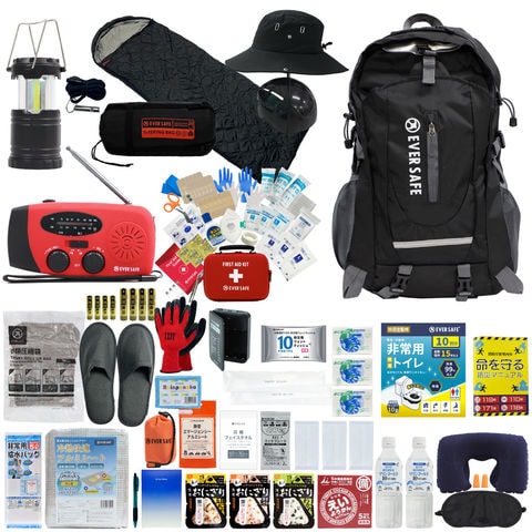 防災セット 1人用 ハット型ヘルメット付き EVERSAFEリュック ブラック L5ESHT01 防災グッズ 防災士監修 ファーストエイドキット 避難グッズ 災害対策 地震対策 トイレ 非常食 長期保存水 防災 警戒レベル5 EVERSAFE