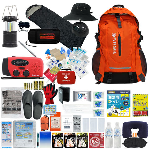 防災セット 1人用 ハット型ヘルメット付き EVERSAFEリュック オレンジ L5ESHT01 防災グッズ 防災士監修 ファーストエイドキット 避難グッズ 災害対策 地震対策 トイレ 非常食 長期保存水 防災 警戒レベル5 EVERSAFE