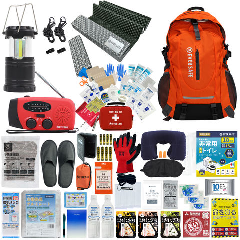 防災セット 1人用 マット付き EVERSAFEリュック オレンジ L5ESMT01 防災グッズ 防災士監修 ファーストエイドキット 避難グッズ 災害対策 地震対策 トイレ 非常食 ランタン ラジオ 長期保存水 懐中電灯 警戒レベル5 EVERSAFE