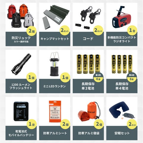 防災セット 2人用 マット付き EVERSAFEリュック (オレンジ×ホワイト) L5ESMT02 防災士監修 ファーストエイドキット 避難グッズ 災害対策 地震対策 トイレ 非常食 ランタン ラジオ 長期保存水 懐中電灯 警戒レベル5