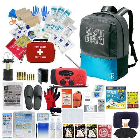 防災セット 1人用 40L ビッグリュック ブルー L5BR01 防災グッズ 防災士監修 ファーストエイドキット 避難グッズ 災害対策 地震対策 トイレ 非常食 ランタン 保存水 充電器 ラジオ 懐中電灯 防災 ギフト 警戒レベル5 EVERSAFE