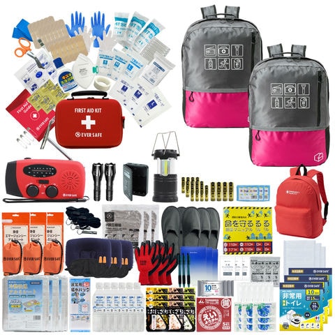 防災セット 3人用 40L ビッグリュック (レッド×レッド) L5BR03 エマージェンシーリュック 防災グッズ 防災士監修 ファーストエイドキット 避難グッズ 災害対策 地震対策 トイレ 非常食 ランタン 保存水 充電器 警戒レベル5 EVERSAFE