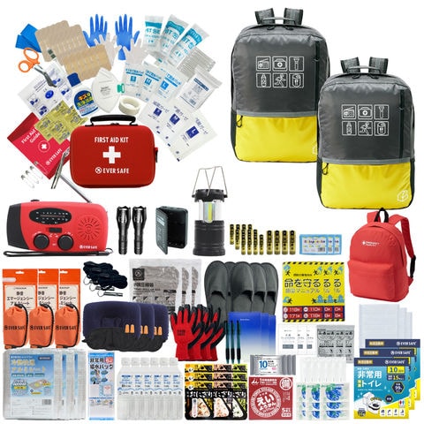 防災セット 3人用 40L ビッグリュック (イエロー×イエロー) L5BR03 エマージェンシーリュック 防災グッズ 防災士監修 ファーストエイドキット 避難グッズ 災害対策 地震対策 トイレ 非常食 ランタン 保存水 充電器 警戒レベル5 EVERSAFE