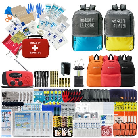 防災セット 5人用 40L ビッグリュック (ブルー×イエロー) L5BR05 エマージェンシーリュック 防災グッズ 防災士監修 ファーストエイドキット 避難グッズ 災害対策 地震対策 トイレ 非常食 ランタン 保存水 充電器 警戒レベル5 EVERSAFE